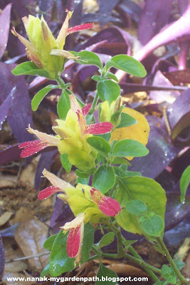 Your new Shrimp plant looks quite cool. I have never seen one that color . But I must confess that all your oak leaves free biomass mulch for you garden is making me jealous! :-]